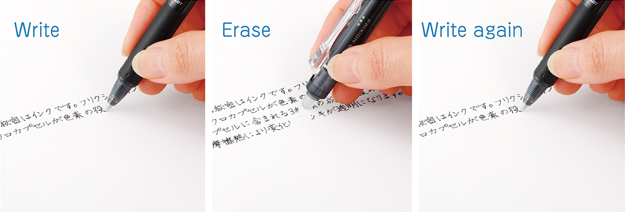 Ballpoint pens have been considered permanent writing instruments, different from pencils that can be erased with an eraser. PILOT’s FRIXION, which was launched in 2006, became a worldwide hit as an unprecedented erasable ballpoint pen.