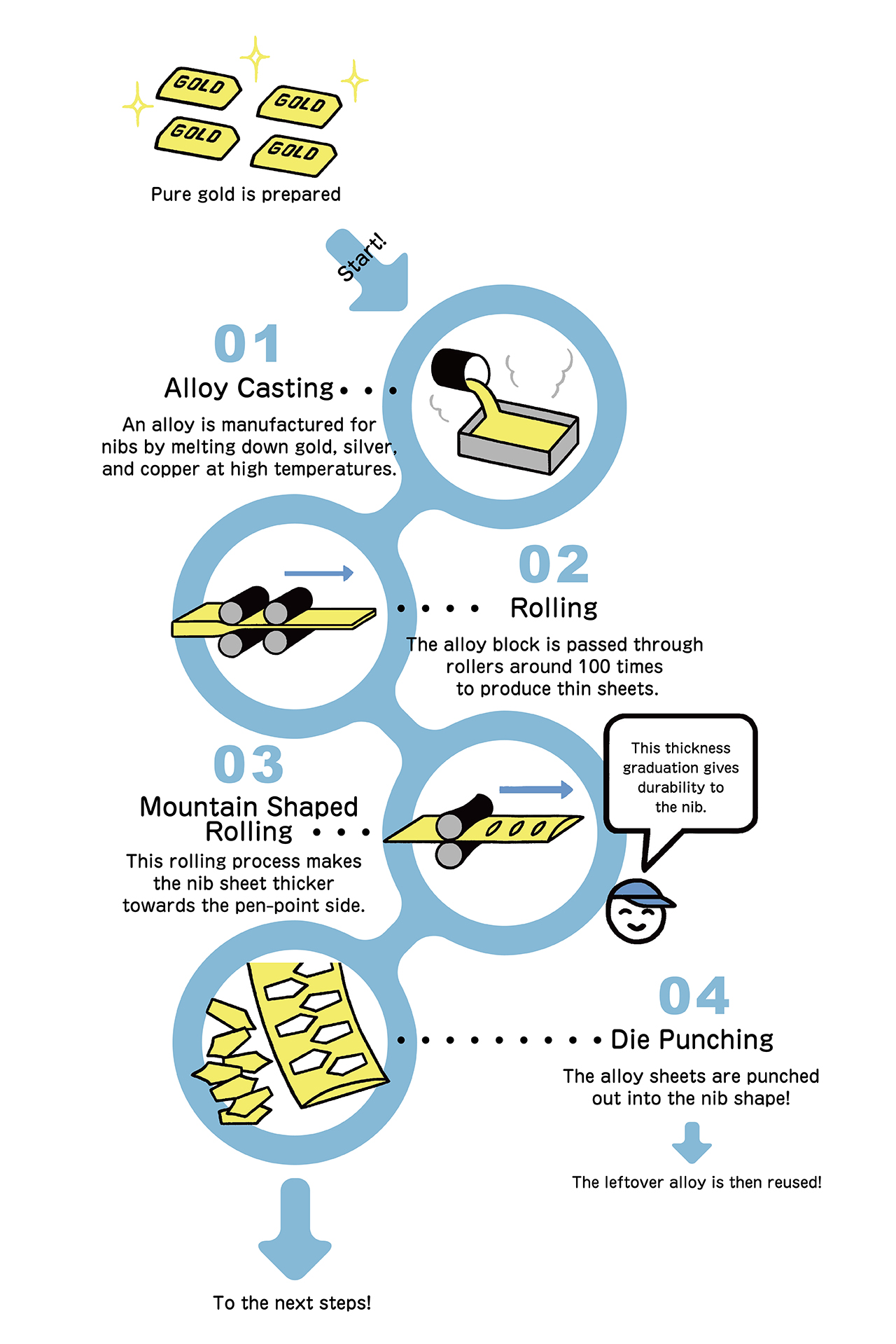 The heart of every fountain pen that can make or break the ease of writing is the pen nib. Let's take a look at the production process, where each nib is made carefully by hand!