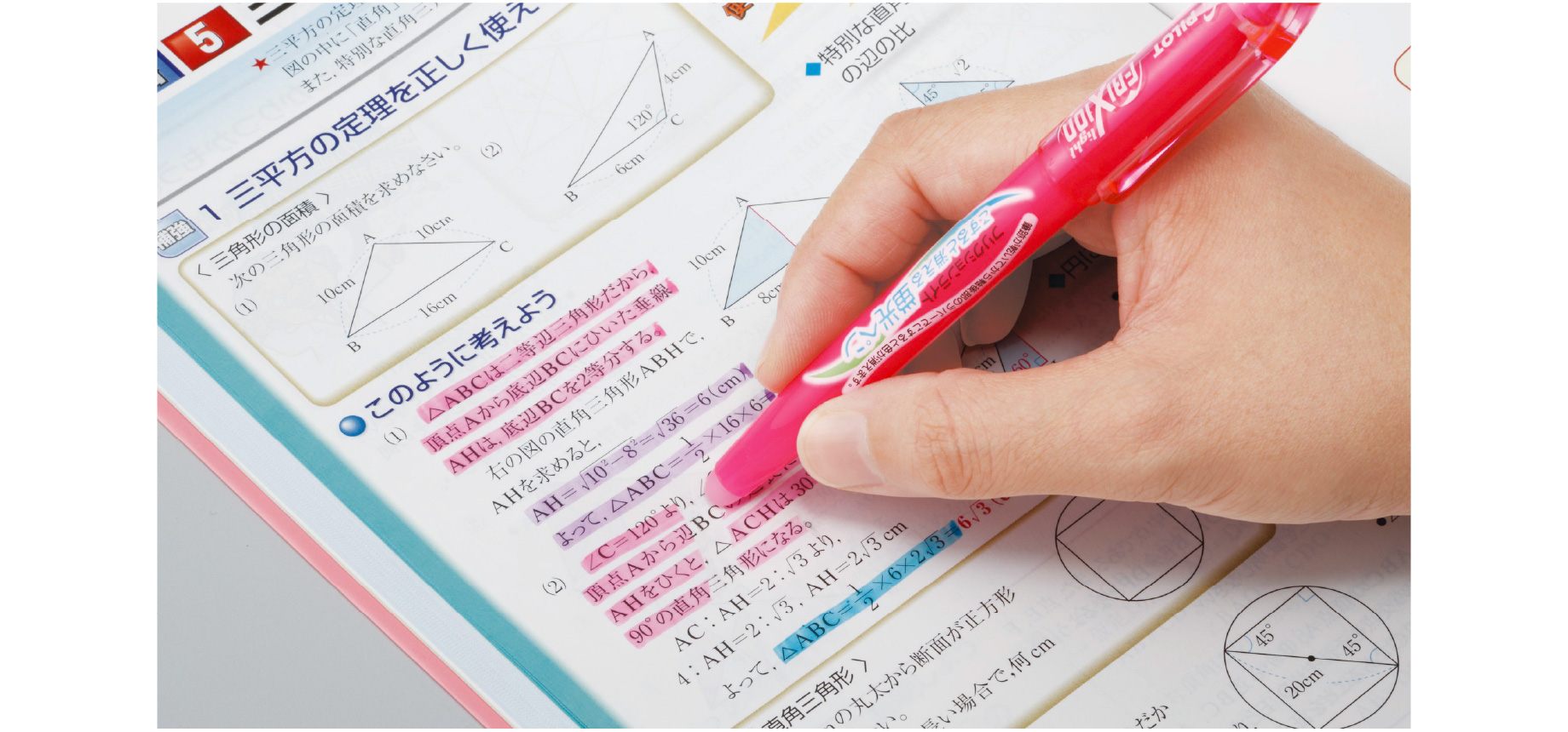 教科書や参考書をキレイに使える、消せる蛍光ペン「フリクションライト」は、学生の強い味方ともいえますね。