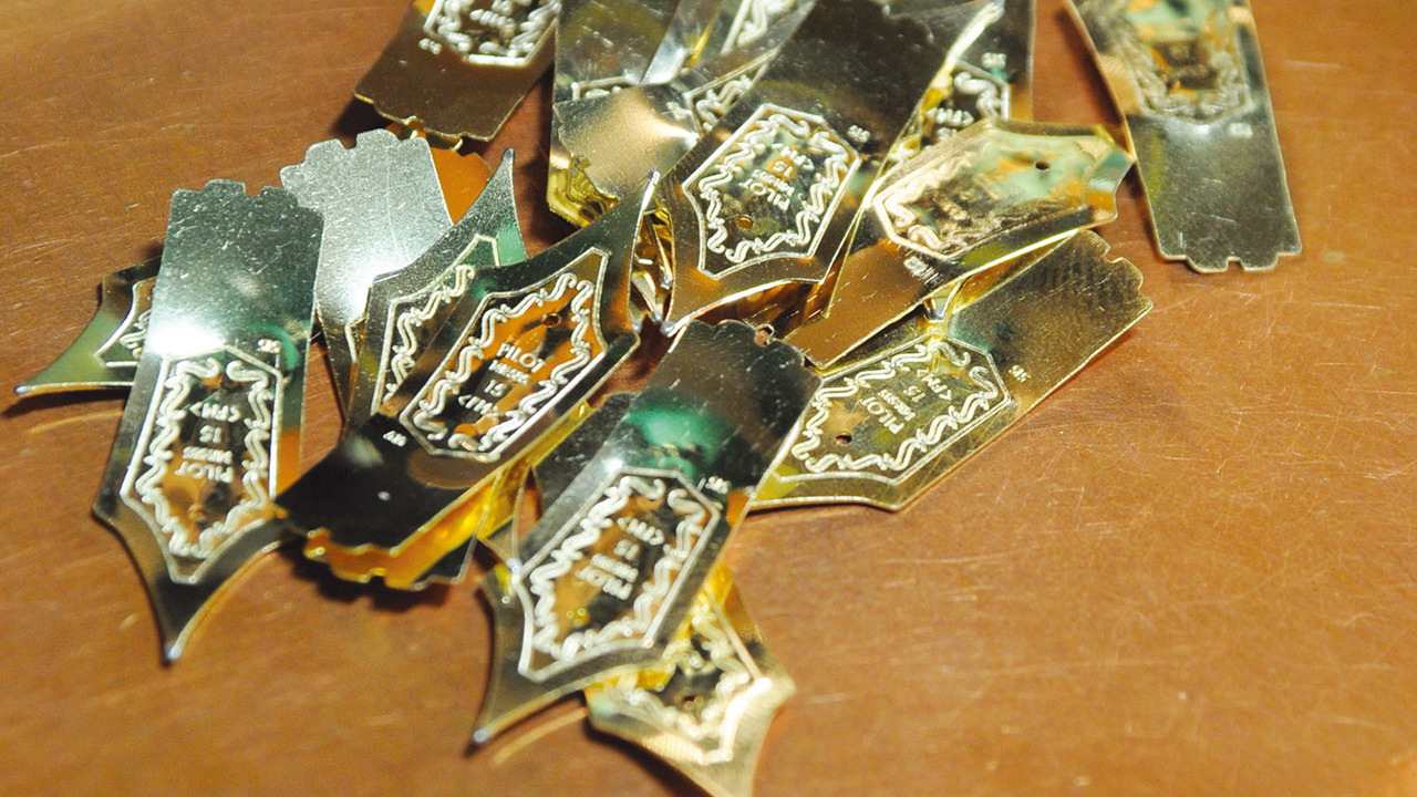 Having been engraved and molded, the nibs move on to the slitting stage to manufacture a channel for ink flow. Each nib is carefully checked as it continues through the finishing process. Almost finished!