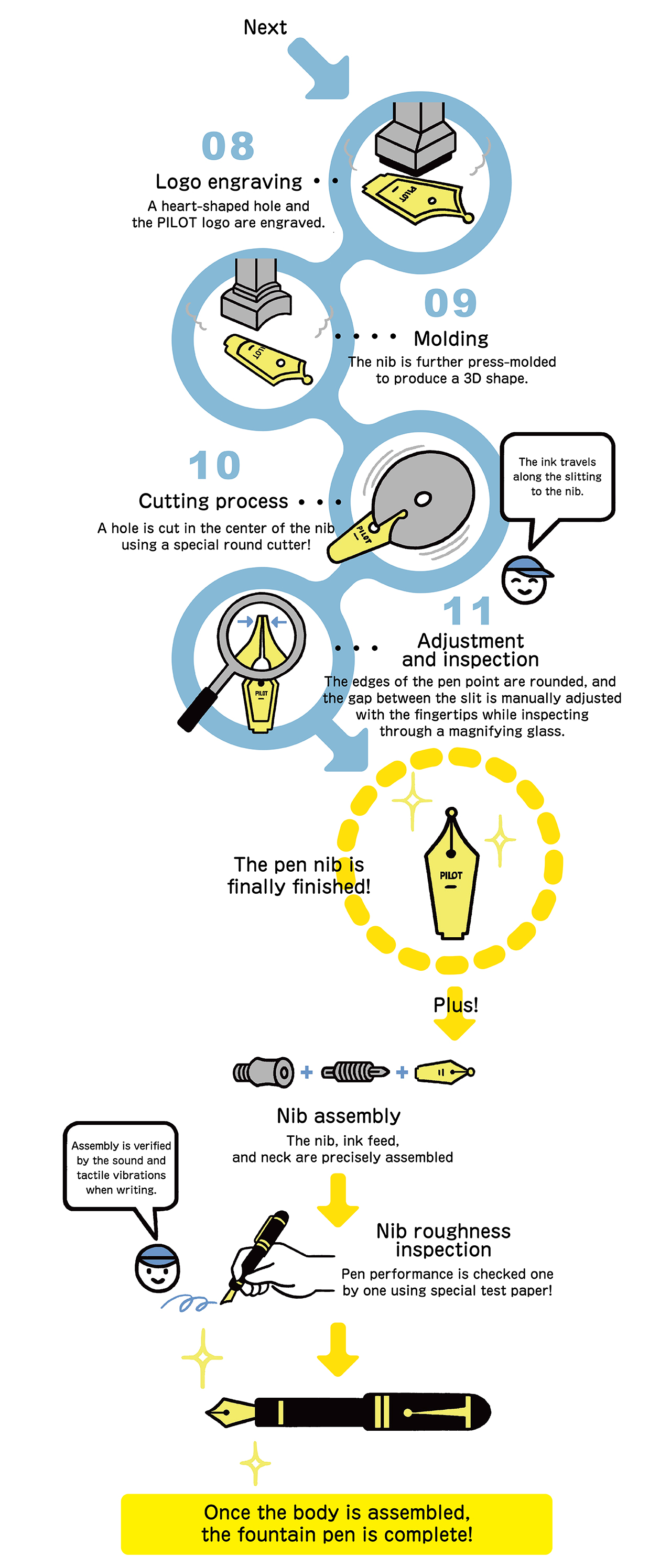 PILOT manufactures not only the nibs themselves but also the small spherical pen points at the tip of the nibs.