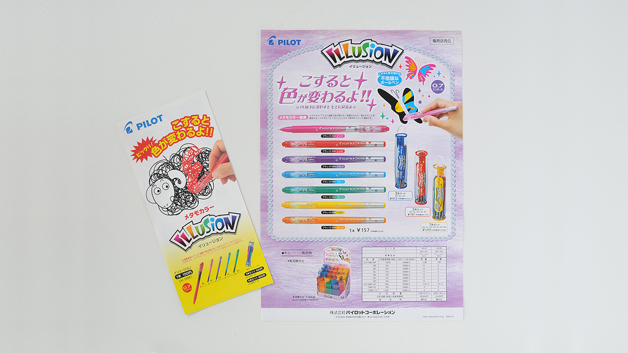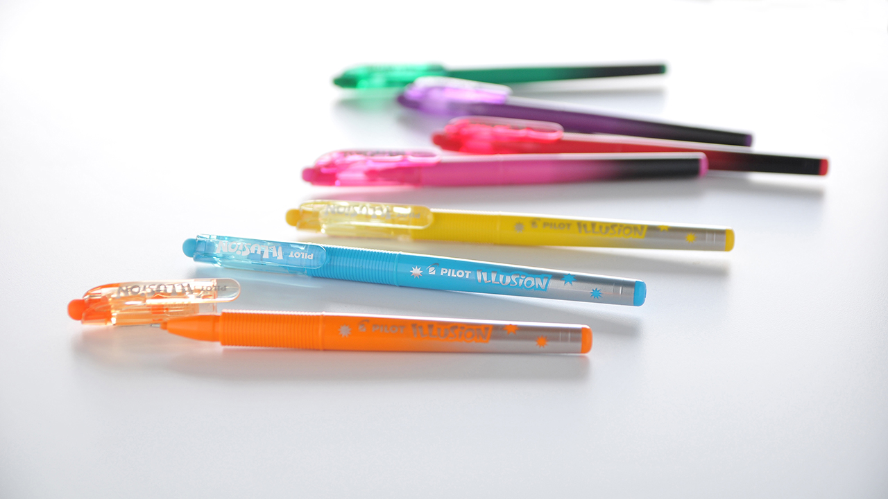 A remark made by a marketing person at PILOT’s European subsidiary, who had seen the ILLUSION pens for himself, launched the movement to commercialize erasable ballpoint pens using Metamo Color that could be erased through frictional heat.