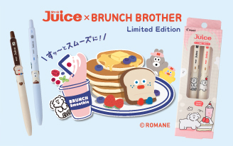 ゲルインキボールペン「ジュース」が、韓国発の人気キャラクター「BRUNCH BROTHER(ブランチブラザー)」とコラボ! 「ジュース」の"スムーズ"な書き味から着想を得て誕生した「BRUNCH Smoothie(ブランチスムージー)」をテーマに、可愛いキャラクターたちが癒しを届けます【数量限定】