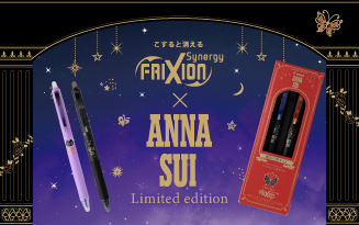 細くなめらかな書き味が特長の消せるボールペン「フリクションシナジーノック」とファッションブランド「ANNA SUI」がコラボ。