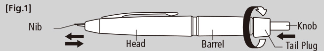 Fill the converter with ink by turning the knob in the direction of the arrow.[Fig.4]