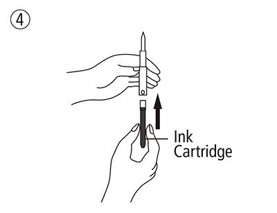 - When starting to use a fountain pen for the first time, pinch the middle of the inserted cartridge with your fingers gently so that the ink flows down to the pen point.