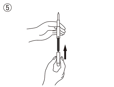 * To replace the converter with an ink cartridge, first remove any remaining ink from the converter. Then hold the neck of the pen with the nib pointing up and slowly remove the converter by slightly pulling it straight or twisting it clockwise.