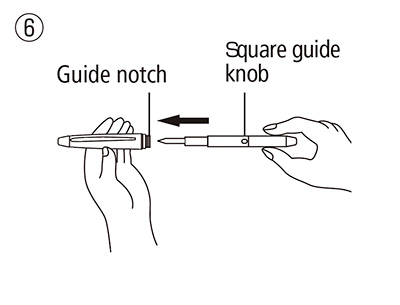 Then insert the penholder into the head by sliding the penholder's square guide knob in the guide notch in line with the pen clip.
