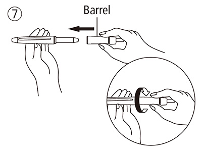 Insert the barrel into the head and turn it in the direction of the arrow to secure it.