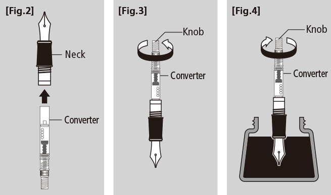 Fill the converter with ink by turning the knob in the direction of the arrow.[Fig.4]